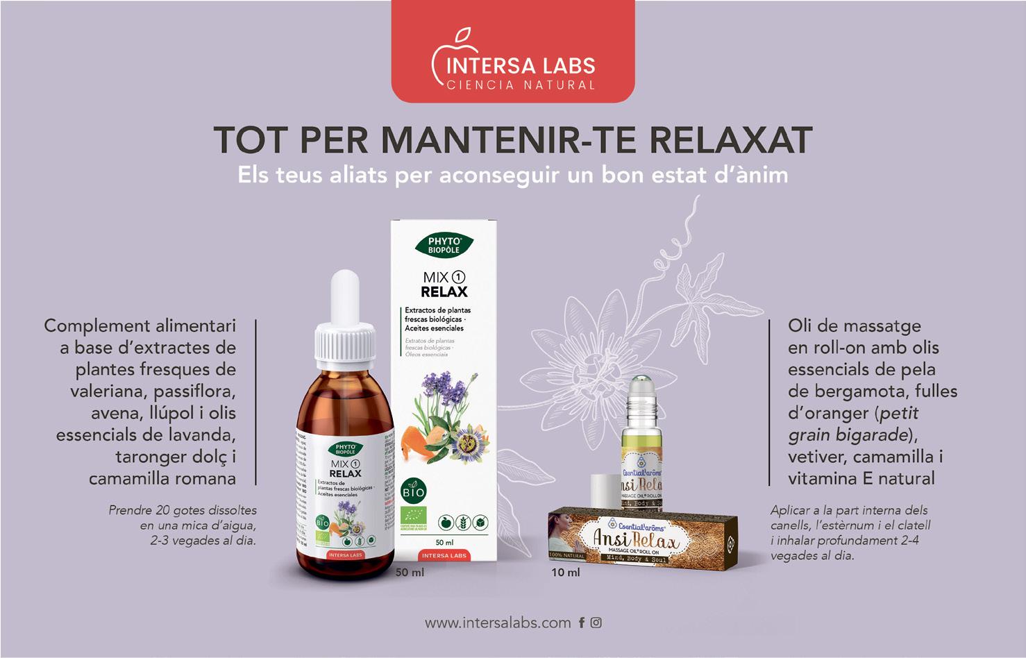 L’arrel de valeriana, el llúpol, la passiflora i la civada són per excellència les plantes d’ús tradicional que ens poden ajudar a reduir l’estrès i l’ansietat, contribuint així a mantenir-nos relaxats durant el dia i també