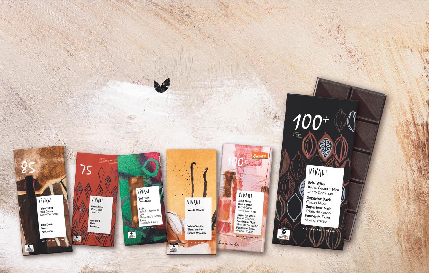 tableta de chocolate Vivani que contiene al menos un 70% de cacao.