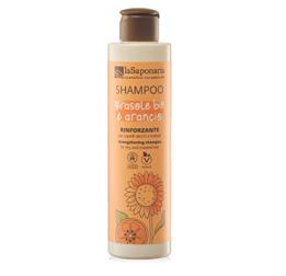 El champú ecológico de girasol y naranja está enriquecido con semillas de lino ecológicas, la moringa y el girasol ecológico, que cuidan y refuerzan el cabello desde la raíz hasta las puntas. También contiene isomerato de sacárido, que hidrata intensamente y de forma duradera el cuero cabelludo, y jugo de aloe ecológico, fundamental para el bienestar del cuero cabelludo por sus propiedades hidratantes, equilibrantes y suavizantes.