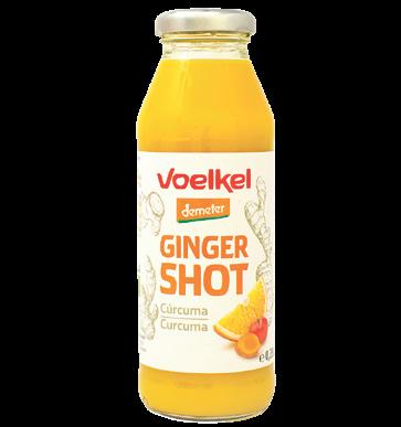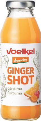 Con un sabor picante y a la vez afrutado, contiene jengibre, naranja, limón y cúrcuma, todos ellos de calidad certificada Demeter y ecológica. Formulado para tomarse en pequeñas dosis diarias, en las que cada shot aporta el 50% de la vitamina C diaria recomendada, ayudando a fortalecer tus defensas de forma natural.