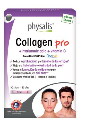 Ingredientes: colágeno marino tipo I hidrolizado, **vitamina C, *ácido hialurónico