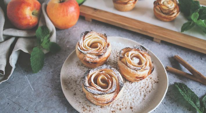 Rosas de manzana con mermelada de fresa