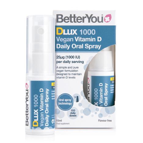 BetterYou presenta D1000 Vegan, D3000 Vegan y D3000 Vitamina D+K2. La vitamina D3 contribuye al normal funcionamiento del sistema inmune y los músculos, y al mantenimiento de los huesos y los dientes en condiciones normales.