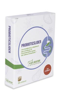 Complemento alimenticio a base de probióticos, lactoferrina y vitamina D3, que contiene la mezcla de 1.000 millones de bacterias probióticas y también prebióticos para servir así de alimento a los probióticos y hacer que aumenten las colonias formadoras de esas bacterias buenas. Este complemento también contiene lactoferrina y vitamina D, que contribuye al funcionamiento normal del sistema inmunitario. Sus cápsulas son gastrorresistentes, lo que permite que pasen directamente al intestino grueso sin degradarse antes por los jugos gástricos.