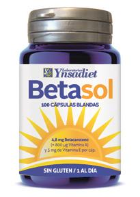 ¿Sabía que la exposición al sol genera una mayor oxidación en nuestras células? Sabemos que el sol es crucial en la salud de nuestro organismo pero el exceso de exposición puede provocar daños celulares que influyen, entre otras cosas, en el envejecimiento prematuro de la piel. Está ampliamente extendido el papel de la Vitamina A en el mantenimiento de la piel. Betasol es un producto pensado para preparar la piel frente a la exposición al sol. Está formulado con Betacarotenos naturales (ricos en Vitamina A), enriquecidos con aceite de oliva virgen extra y Vitamina E, que contribuye a proteger nuestras células frente a la oxidación celular.