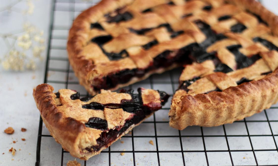cular. Debe pasar alternativamente por debajo de una y por encima de la siguiente, hasta acabar con todas y cubrir la tarta. Recorta el resto de masa sobrante alrededor de la tarta y sella la base con los extremos de las tiras superiores, hazlo pellizcando la masa para que quede bonito.
