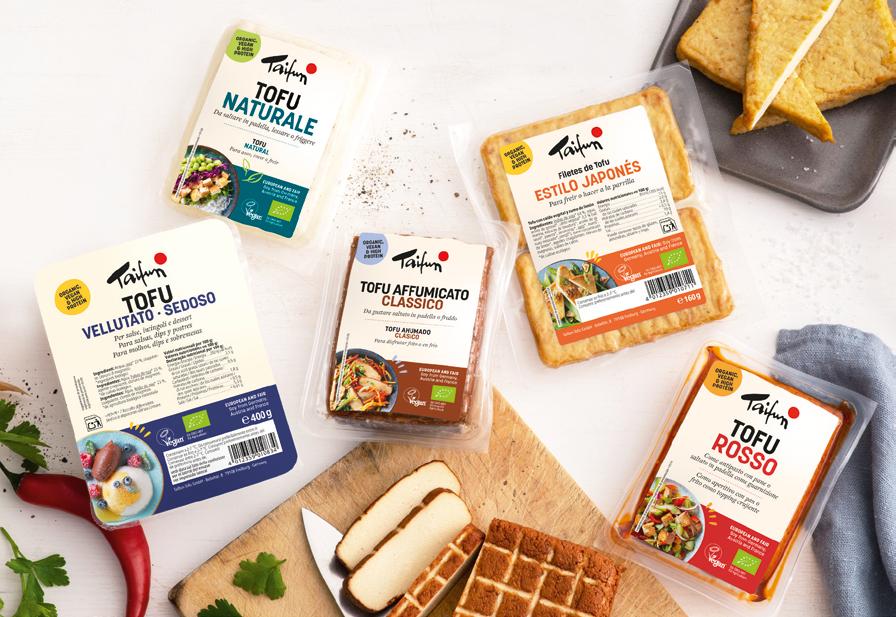 Triturar finamente el tofu fermentado Tofé de Taifun con un tenedor. Añadir el puerro, sazonar con sal, pimienta y comino y reservar.