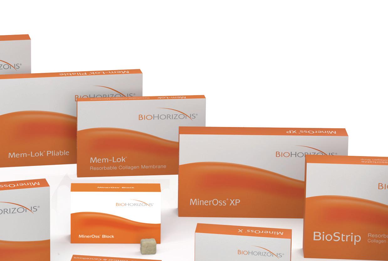 BioHorizons®, MinerOss®, Mem-Lok® and NovoMatrix® are registered trademarks of BioHorizons. Cytoplast® is a registered trademark of Osteogenics Biomedical, Inc. Striate+™ is manufactured by Orthocell Ltd.Striate+™ and SMRT™ are trademarks of Orthocell Ltd. SynMax® PermaPro® and DEDICAM® are registered trademarks of CAMLOG Biotechnologies GmbH. They may, however, not be registered in all markets.