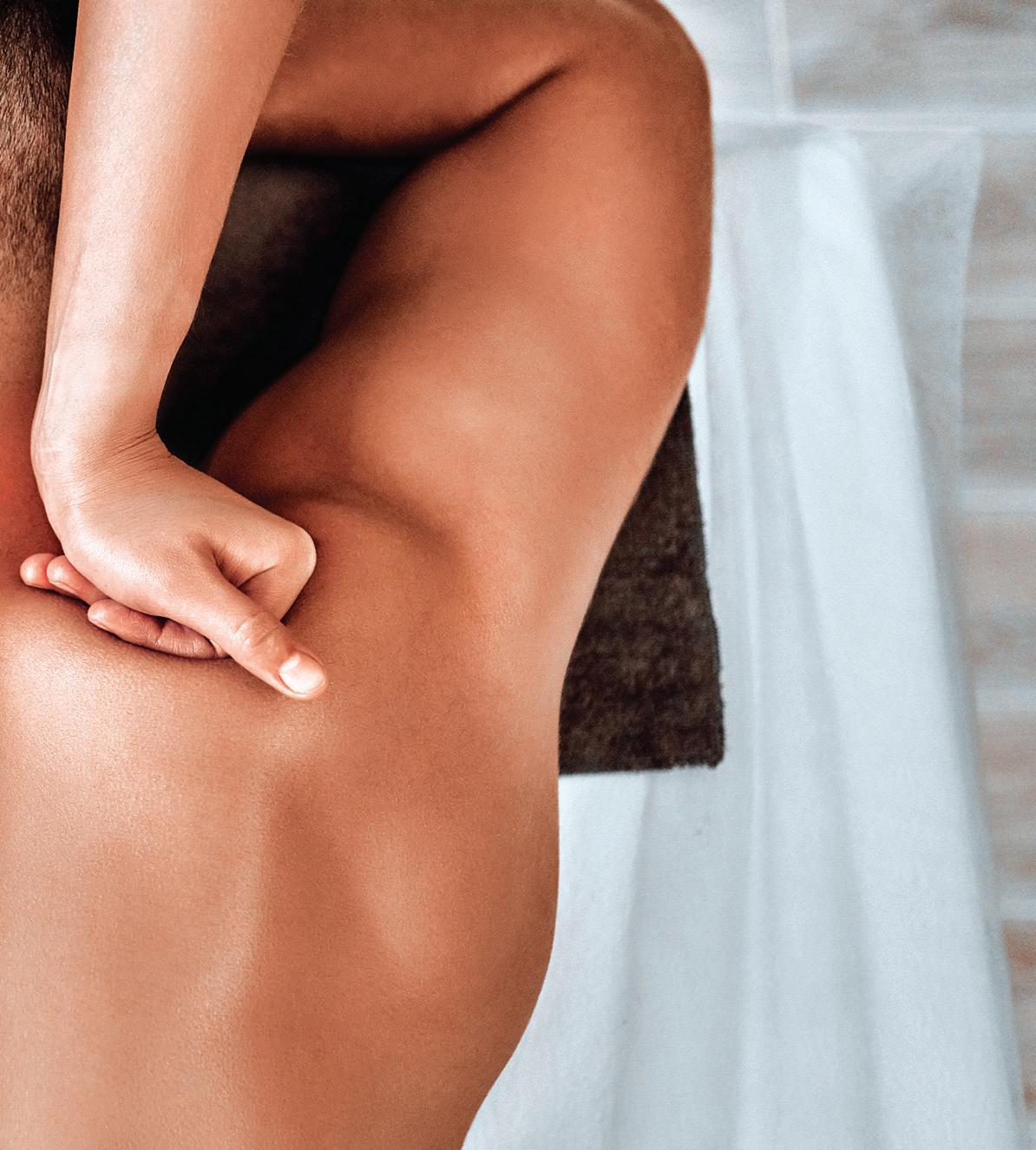 Employing a mix of soft Swedish massage and harder deep-tissue massage, she uses long sweeping strokes to massage the back and leg muscles, and her fingers find and relieve tension knots in the shoulders and neck. “When we are stressed, we lower our heads and raise our shoulders,” she says.