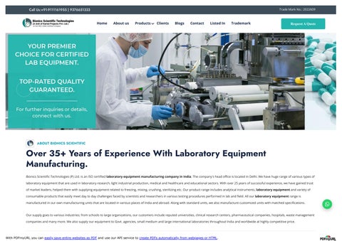 Bionics Scientific Technologies (P) Ltd. is an ISO certified laboratory equipment manufacturing company in India. The company's head office is located in Delhi. We have huge range of various types of laboratory equipment that are used in laboratory research, light industrial production, medical and healthcare and educational sectors. With over 25 years of successful experience, we have gained trust of market leaders, helped them with supplying equipment related to freezing, mixing, crushing, sterilizing etc.