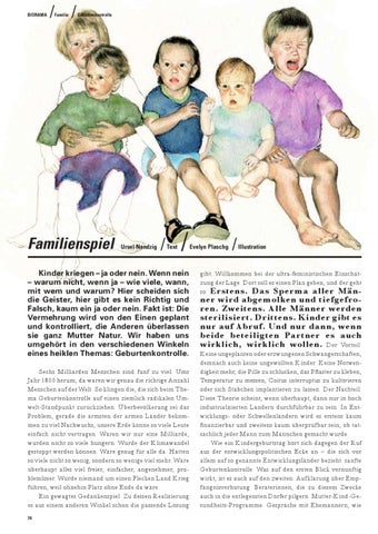 Kinder kriegen – ja oder nein. Wenn nein – warum nicht, wenn ja – wie viele, wann, mit wem und warum? Hier scheiden sich die Geister, hier gibt es kein Richtig und Falsch, kaum ein ja oder nein. Fakt ist: Die Vermehrung wird von den Einen geplant und kontrolliert, die Anderen überlassen sie ganz Mutter Natur. Wir haben uns umgehört in den verschiedenen Winkeln eines heiklen Themas: Geburtenkontrolle. Sechs Milliarden Menschen sind fünf zu viel. Ums Jahr 1800 herum, da waren wir genau die richtige Anzahl Menschen auf der Welt. So klingen die, die sich beim Thema Geburtenkontrolle auf einen ziemlich radikalen Umwelt-Standpunkt zurückziehen. Überbevölkerung sei das Problem, gerade die ärmsten der armen Länder bekommen zu viel Nachwuchs, unsere Erde könne so viele Leute einfach nicht vertragen. Wären wir nur eine Milliarde, würden nicht so viele hungern. Würde der Klimawandel gestoppt werden können. Wäre genug für alle da. Hätten so viele nicht so wenig, sondern so wenige viel mehr. Wäre überhaupt alles viel freier, einfacher, angenehmer, problemloser. Würde niemand um einen Flecken Land Krieg führen, weil ohnehin Platz ohne Ende da wäre. Ein gewagtes Gedankenspiel. Zu dessen Realisierung es aus einem anderen Winkel schon die passende Lösung 74