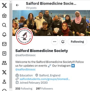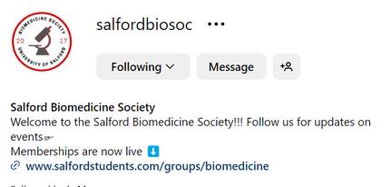 We ended the year with 150+ members (making the society the biggest at the University) and two SU awards nominations (Most Improved Society and Academic Society of the Year) These milestones genuinely reflect the work the committee put in throughout the year Being involved in the society has been a matter of pride. Here’s wishing the new Committee the best of luck for the year ahead. I can't wait to see what is in store for the Salford Biomedicine Society.