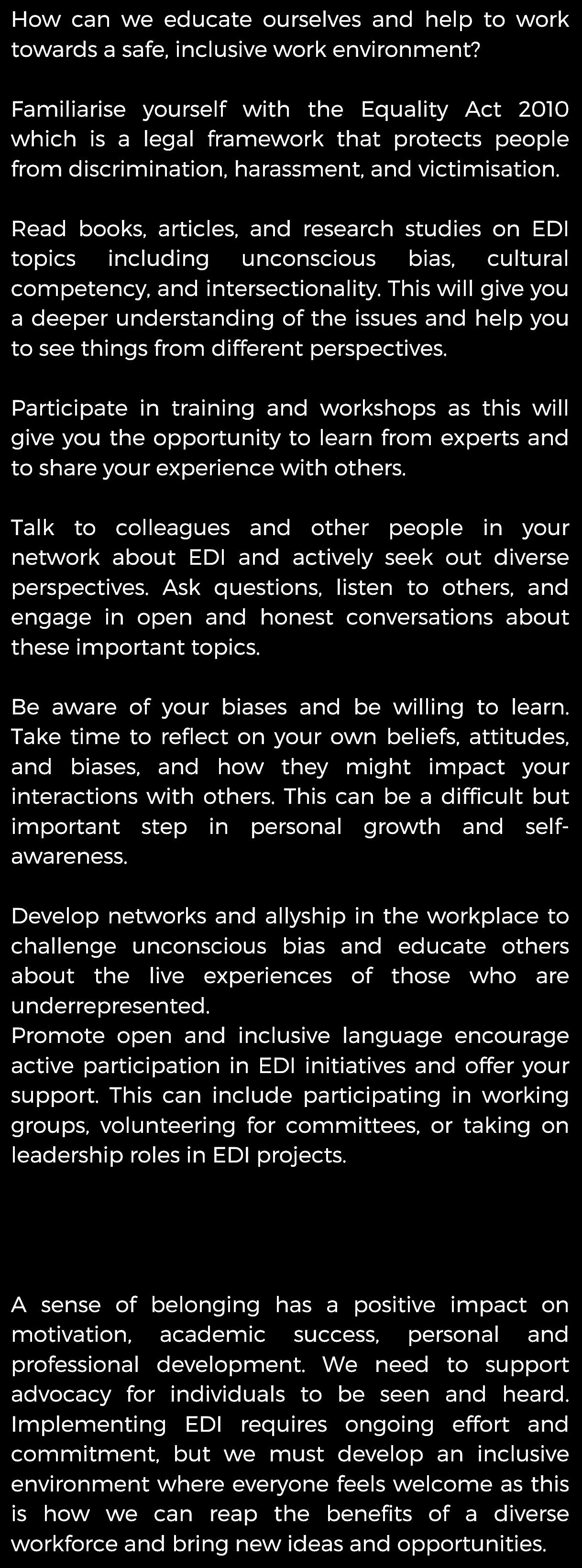 Tahmina Hussain on the importance of EDI efforts to ensure respect and celebration of all backgrounds within a workplace