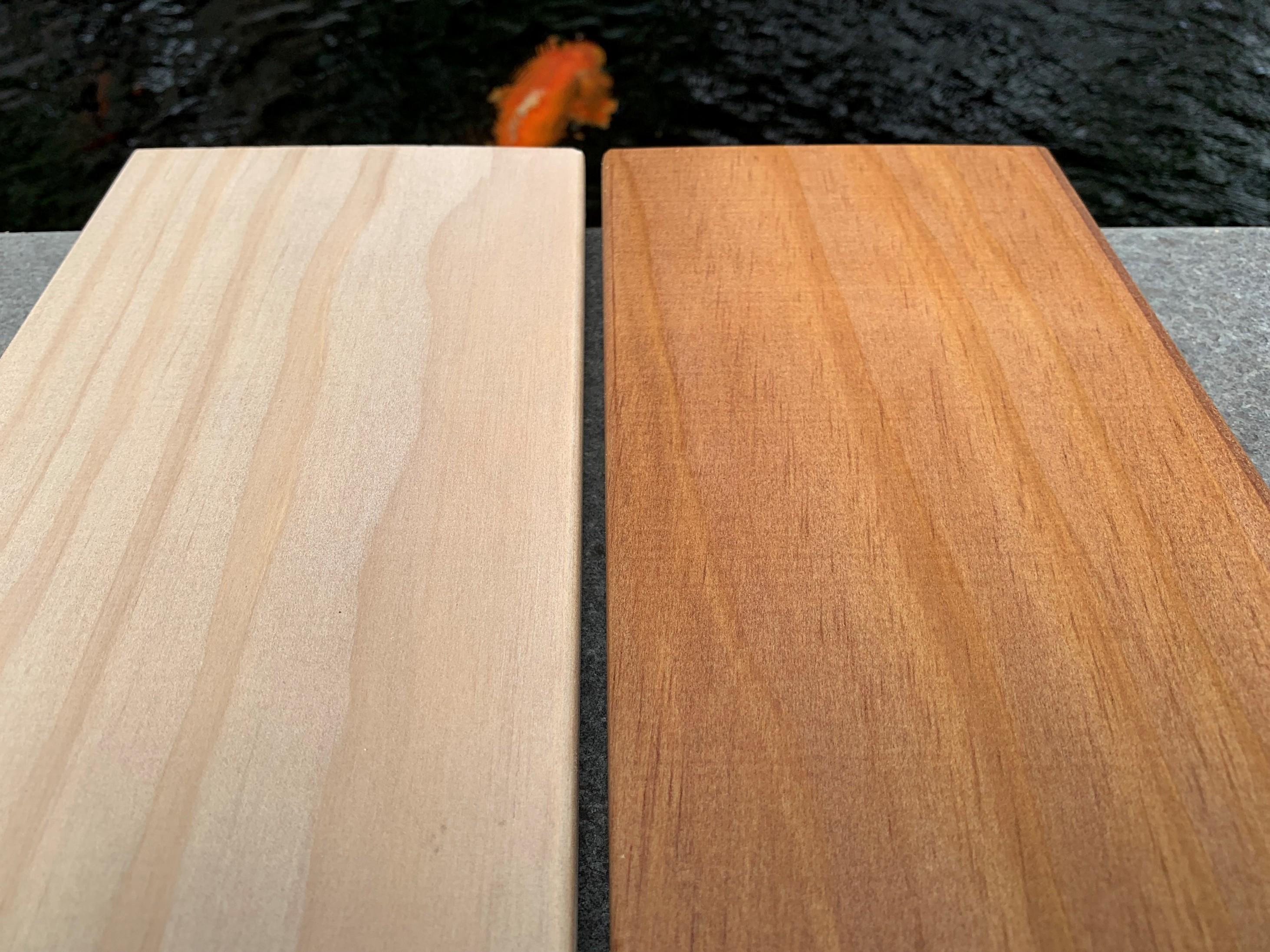Sicaro Safariwood Livada – all vertical grain No oil finish One coat of decking oil