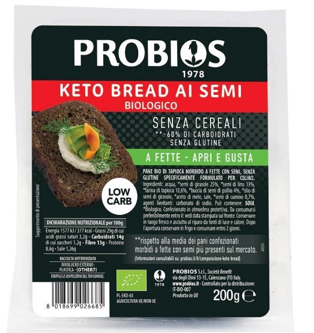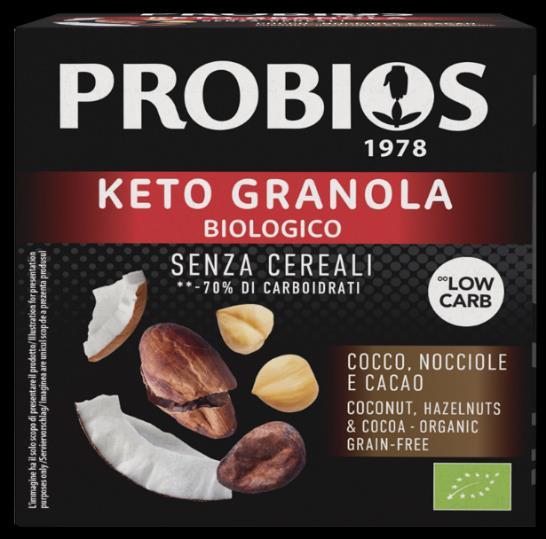 The Keto line by Probios is designed to meet the needs of those who decide to follow a low-carb diet. This nutritional approach is popular between those who want to keep their weight under control by reducing their carbohydrates and sugar intake. The Keto line accompanies you with a wide range of products from breakfast to dinner.