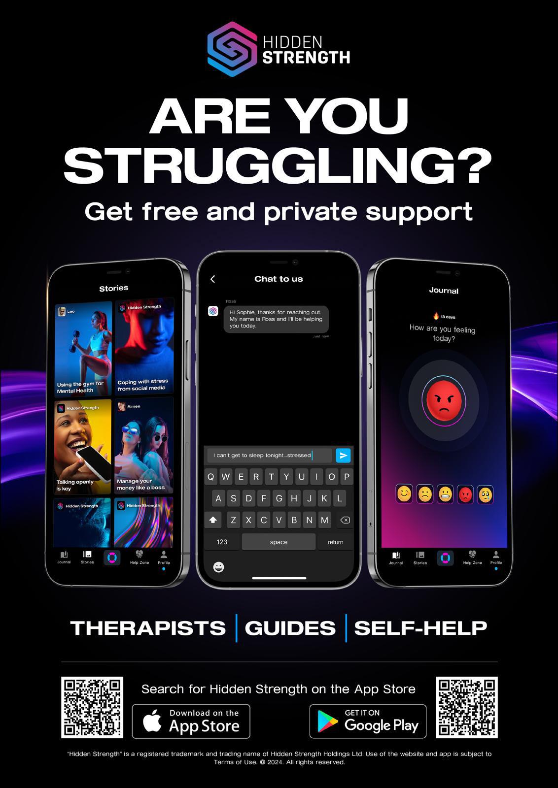 Young people can access therapy at the touch of a button – no lengthy waiting times, no cost, and no judgement. Users can explore hundreds of self-help guides covering topics such as bullying, eating disorders, self-harm, bipolar, anxiety and stress, and track their daily moods in the handy Journal function. The Hidden Strength app is available to download here: