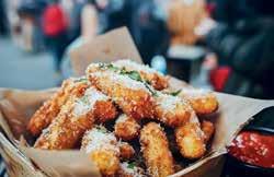 savoury potato churros with parmesan and dipping sauce