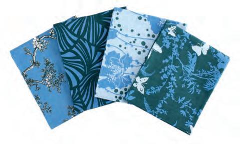Colour coordinated collection based on dusty teals and blue with pink and rust as feature colours. Dynamic orientals and floral patterns in this stylistic range will bring your projects a gorgeous artistic look.