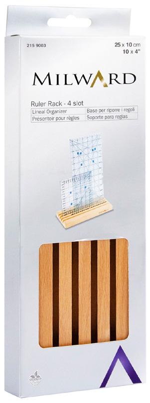 An ideal solution for safely storing quilting rulers or templates, making them accessible and less prone to damage. Made from beautiful and durable beech wood. Laser etched Milward logo.