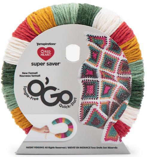 This machine washable worsted weight acrylic yarn is available in a variety of co-ordinating solid and striped shades. Get O’Go-ing on your next project with Red Heart Super Saver O’ Go.