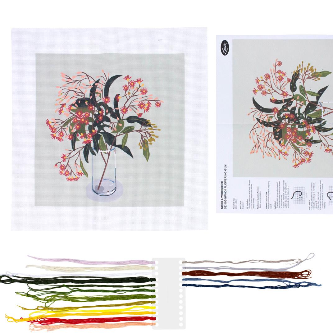 Unbox and savour the full palette of new colours, beautifully boxed and ready to gift or keep. Fresh modern palette of colours that are ideal for modern designs. Includes 24 full-sized 10m skeins of thread and a free 16 x 22cm printed tapestry canvas.