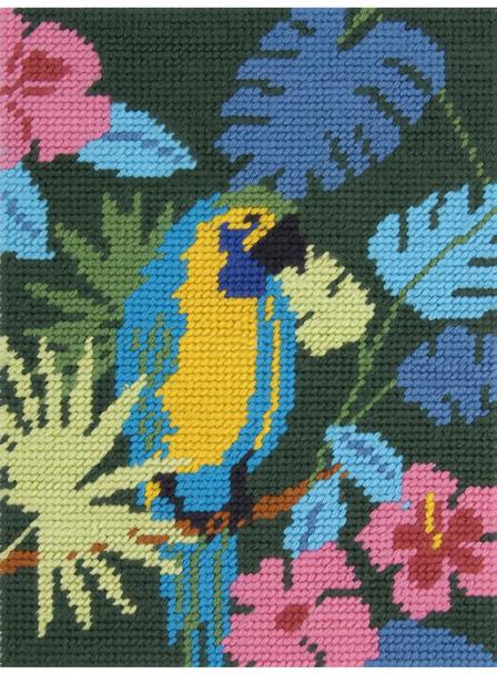 This modern design uses a variety of fresh pastels and rich primary colours. Use the high-quality, pre-printed 10 count Pénélope canvas and half cross stitch to create this bright parrot design.