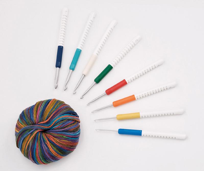 The plastic handle made of hard plastic is not only extremely durable and robust, but also 100% recycled. The hard plastic does not contain any plasticisers, so the handle stays beautiful for a long time and can be easily cleaned with a little water, soap and a soft brush.A rotating upper part ensures the right angle for the individual position. The white handle of the addiColour crochet hook can be rotated to the coloured part with the head to be placed in a right position for the hook to lie comfortably in the hand.