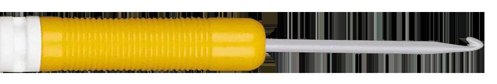 These double-pointed knitting needles have a short section of gold cord, about 5cm long, in the middle of each one, allowing it to bend. The needle tips are 10.5 cm long, with one tip more pointed than the other (1x Basic + 1x Lace).
