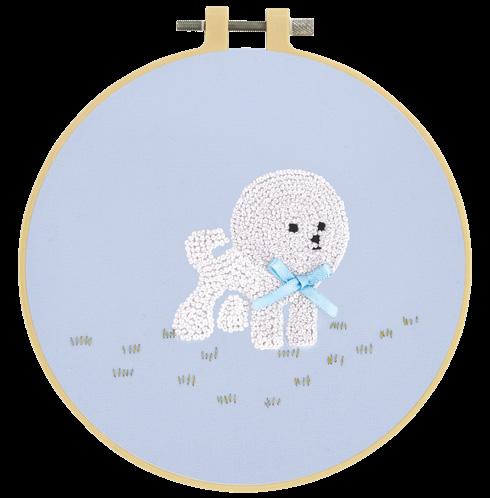 15cm 100% Cotton Kit Contains: Printed design outline, embroidery needle, cotton threads, plastic embroidery hoop & instructions