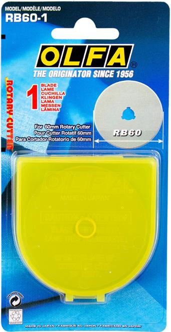 60mm. 1Pc. These rotary blades cut up to six layers of fabric at a time, saving you precious time. Because the blade is made of tungsten tool steel, it retains it’s sharp edge, saving you money.
