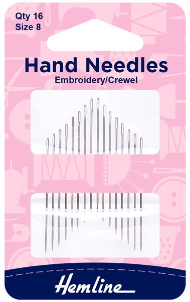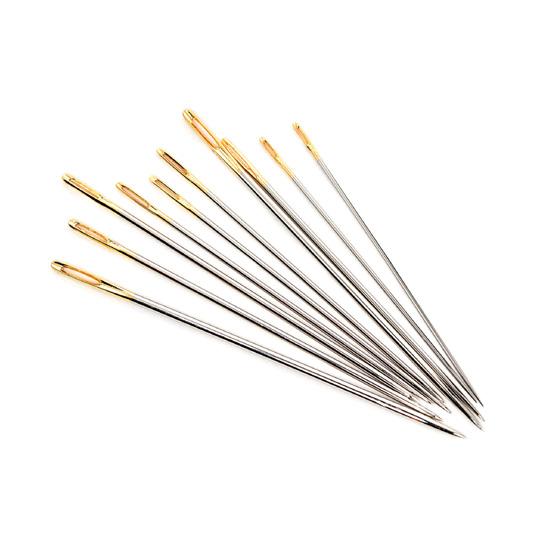 The long shank and small round eye make them perfect for hand stitching as they carry the thread smoothly through the cloth. They are favored by many quilters for English paper piecing and applique. They are also the needle of choice for tacking, stitching pleats, bullion stitch embroidery and beading.