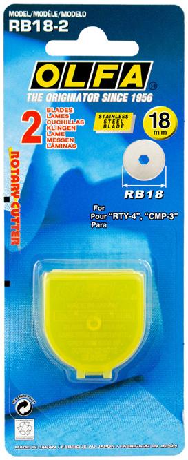18mm. 2pcs. Stainless steel blade replacement in a plastic reusable case. Olfa blades are designed for hand held cutting when used on OLFA cutters and knives.
