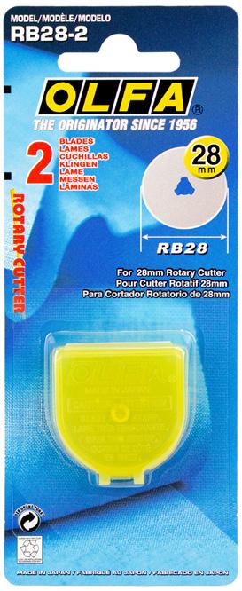 28mm. 2pcs. This rotary blade cuts up to six layers of fabric at a time. The blade is made of tungsten tool steel and it retains its sharp edge over multiple uses.