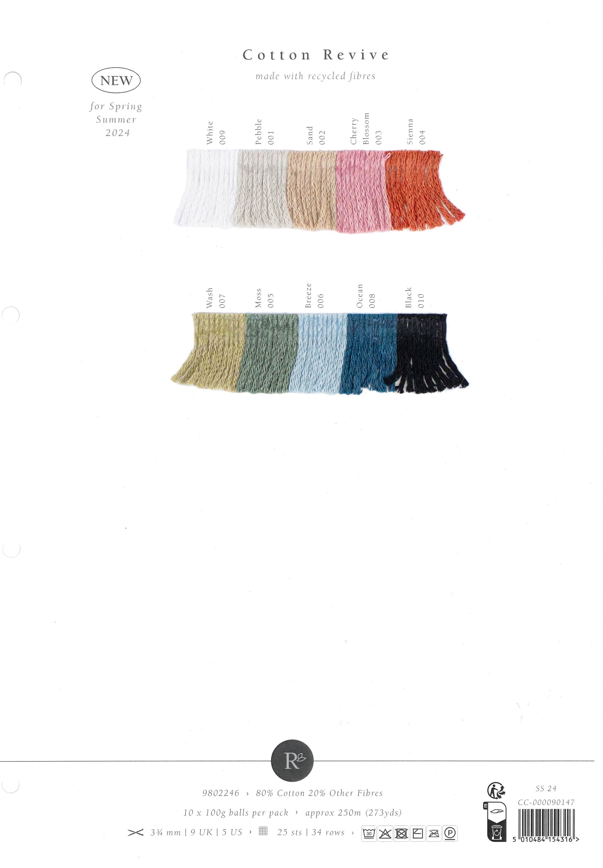 Rowan Cotton Revive is sustainable and environmentally conscious, a 100% recycled yarn which is crafted from regenerated cotton fibres. This innovative tubular yarn not only delivers on the highest quality standards but also contributes to the reduction of textile waste. Meticulously sourced and processed, Cotton Revive offers an eco-friendly choice, great for both knit and crochet. A harmonious blend of style, comfort, and responsible manufacturing.