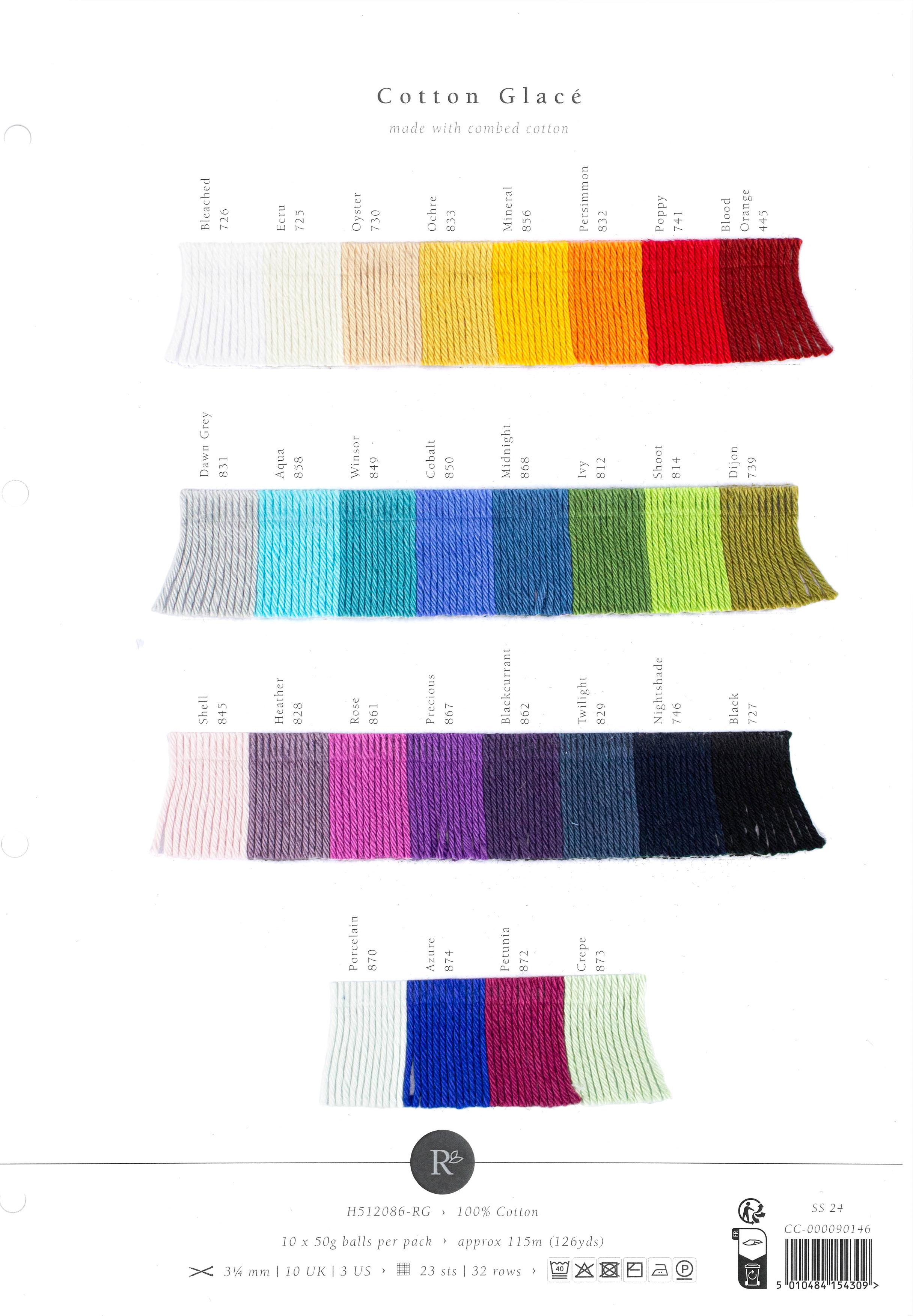 A favourite with designers and knitters alike, Cotton Glace is spun with a high twist for incredible stitch definition. With a variety of bright and breezy shades to choose from it’s an easy option for fun colourwork patterns and perfect for children’s knits as it’s machine washable too. The slight sheen created by the mercerised cotton is a true sign of quality and thanks to the hard-wearing properties of this surprisingly soft yarn, you’ll be wearing your Cotton Glace knits for many years to come.