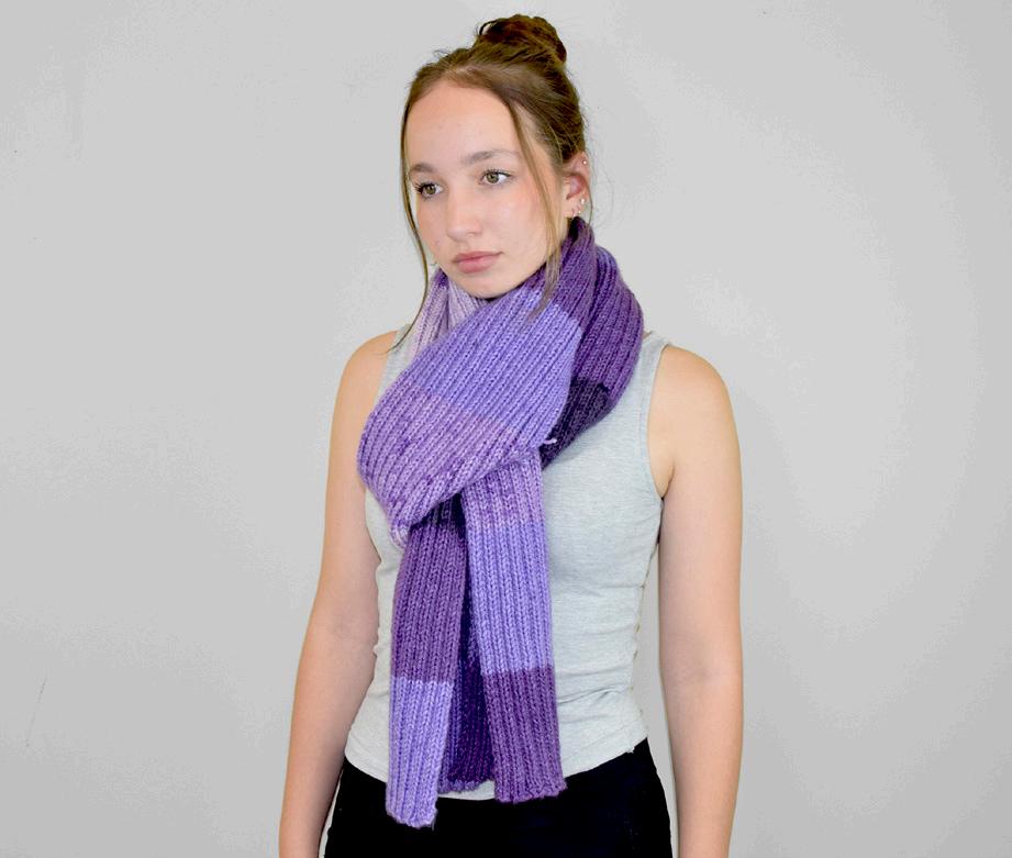 DO NOT PRESS. Darn in ends neatly. Optional – Using remaining yarn, attach a fringe to cast on edge of scarf.