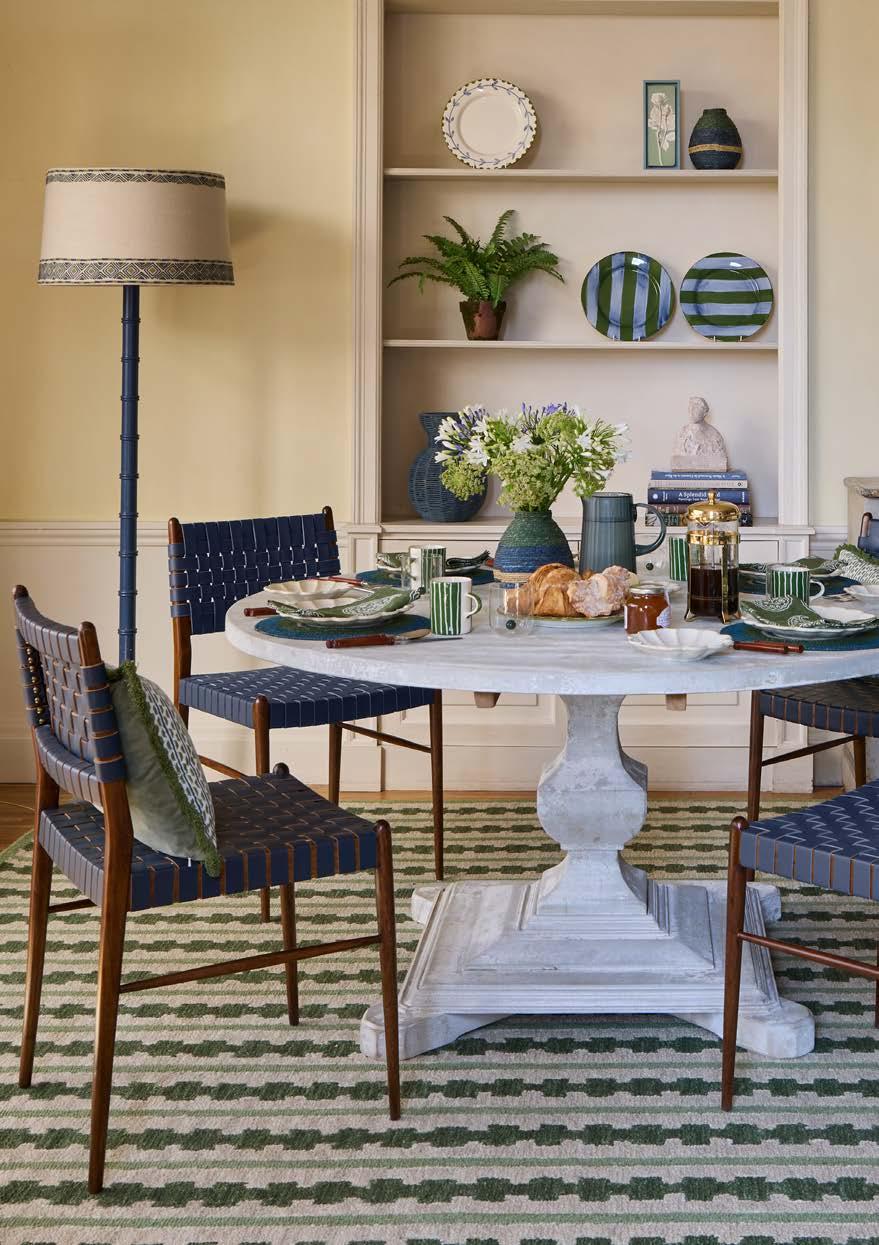 Birdie Fortescue’s AW25 collection, The Silk Road, is a celebration of global inspiration and artisanal craftsmanship. Key designs for the season include marbletopped furniture, woven leather dining chairs and striped jute rugs. Designed to be effortlessly layered, each piece is thoughtfully created by skilled artisans, ensuring authentic and timeless interiors.