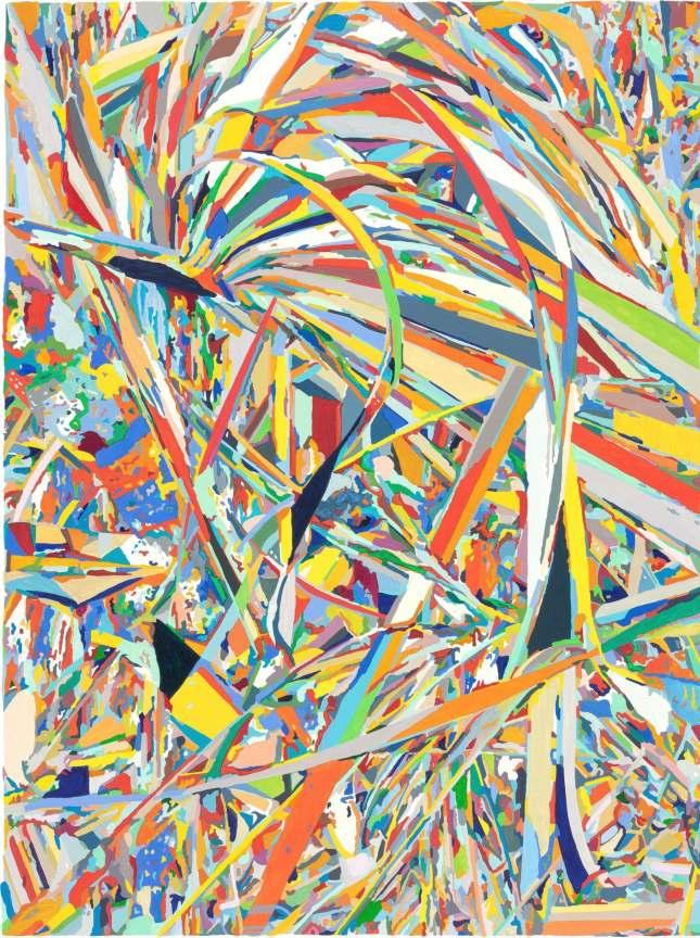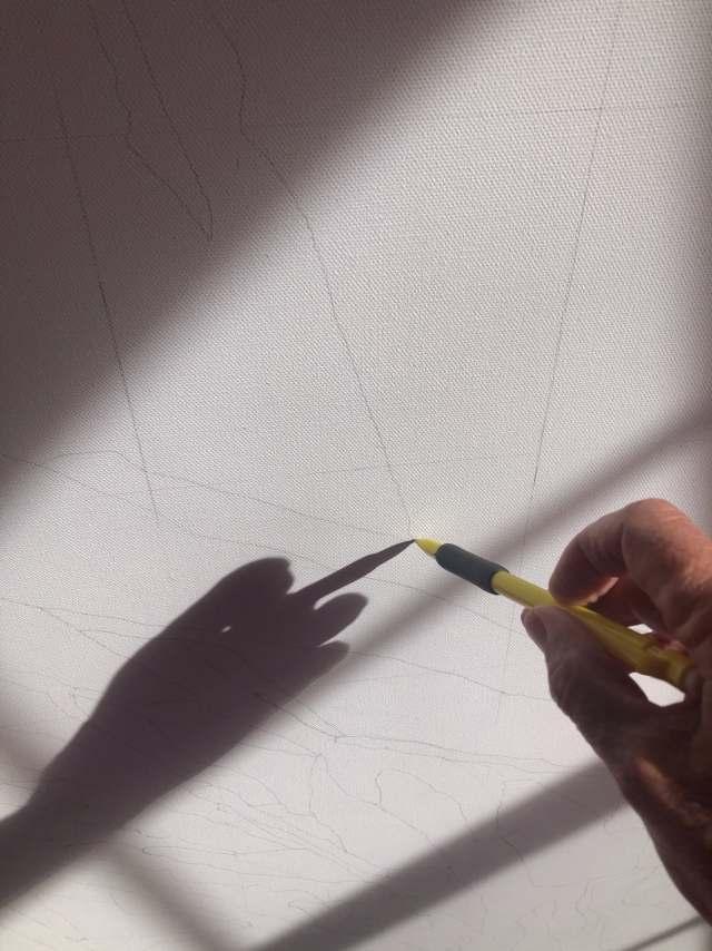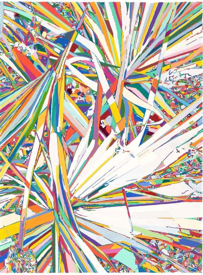 All of the images in this next series are “micro” captures of specific active areas of pattern within “Avenues”. Expansion of the details drawn onto canvas was spontaneous. Only when flat color was added did the enlarged spaces take on a different life.