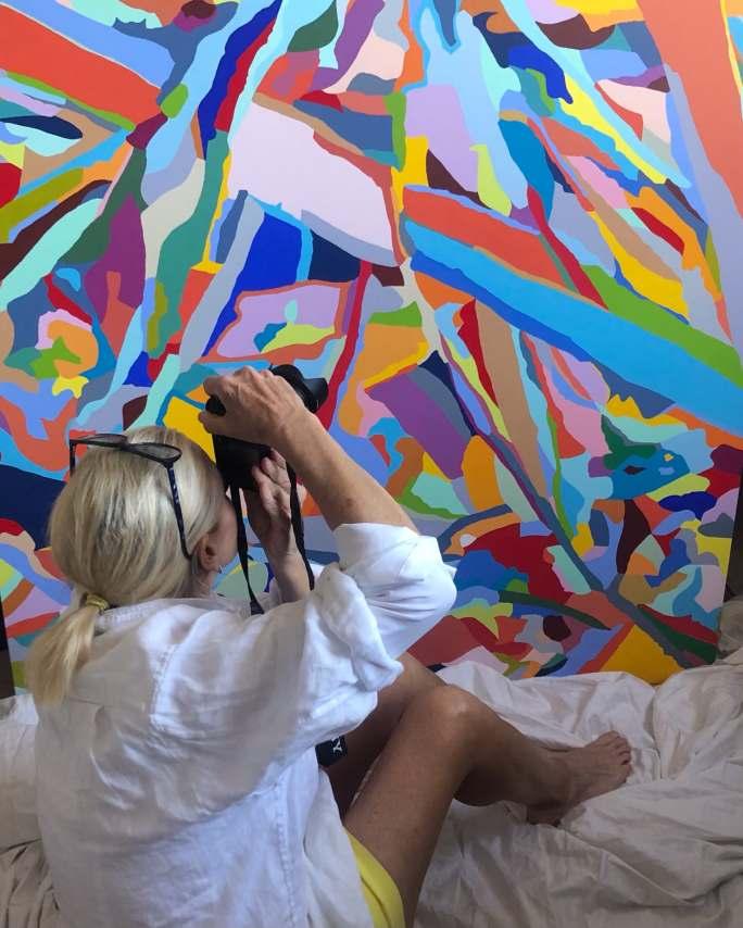 I intuitively painted strong colors for these series. Referencing my favorite inspirations - Pop Art, Hockney, Vasarely, Kusama, Warhol are just a few of my influences. Bright, bold, big, graphic, whimsical.
