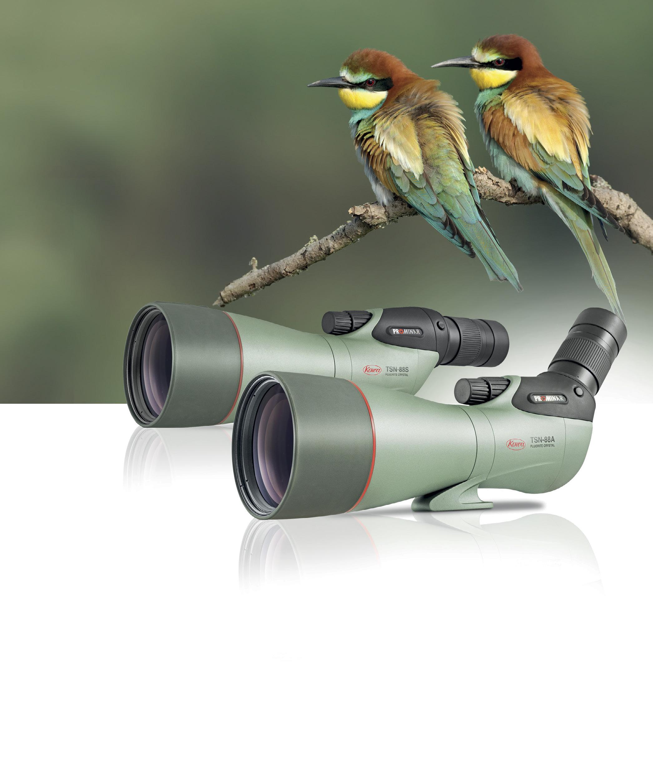 Uudessa TSN-88:ssa on 88 mm:n kupera etulinssi, joka on valmistettu puhtaasta fluoriittikiteestä, joka on kaiken Kowa Prominar -optiikan sydän. Kaukoputken ainutlaatuinen linssinrakenne mahdollistaa uskomattoman elävät värit, poistaa väripoikkeamat ja näyttää aiemmin katsojalle näkymättömiä yksityiskohtia. Kun aiemmin näit linnussa mustan kentän, näet nyt täysin uuden värien kirjon ja entistä enemmän yksityiskohtia.