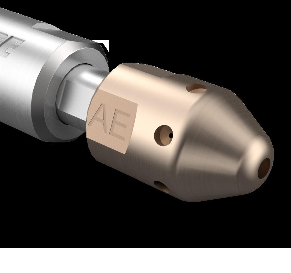 The new Banshee Automate Equipment (AE) head is interchangeable with the traditional head and compatible with existing Banshee tools. The rear jets of the traditional heads have been reconfigured, redistributing that energy to two additional side jets. This eliminates stress from retraction on the automated tractor and optimizes polishing and unplugging power.