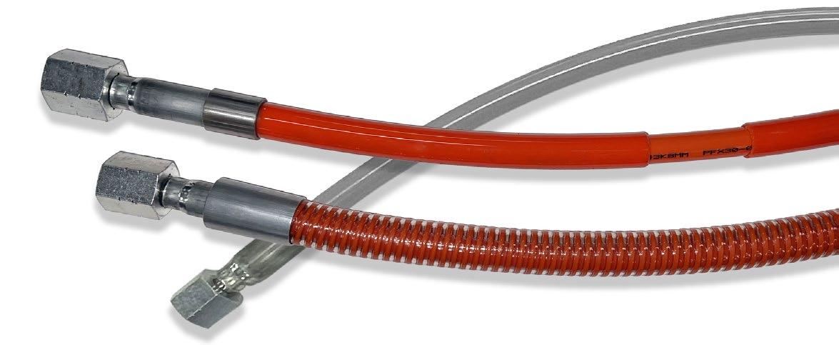 Parflex new PFX waterblast hoses feature working pressures up to 55ksi and low volumetric expansion. The compact design promotes easy handling to reduce operator fatigue. They also help prevent failures by incorporating a Colorgard™ sheath under the jacket to give operators easy visualization of core tube erosion for more efficient product inspections and reduced unscheduled downtime.