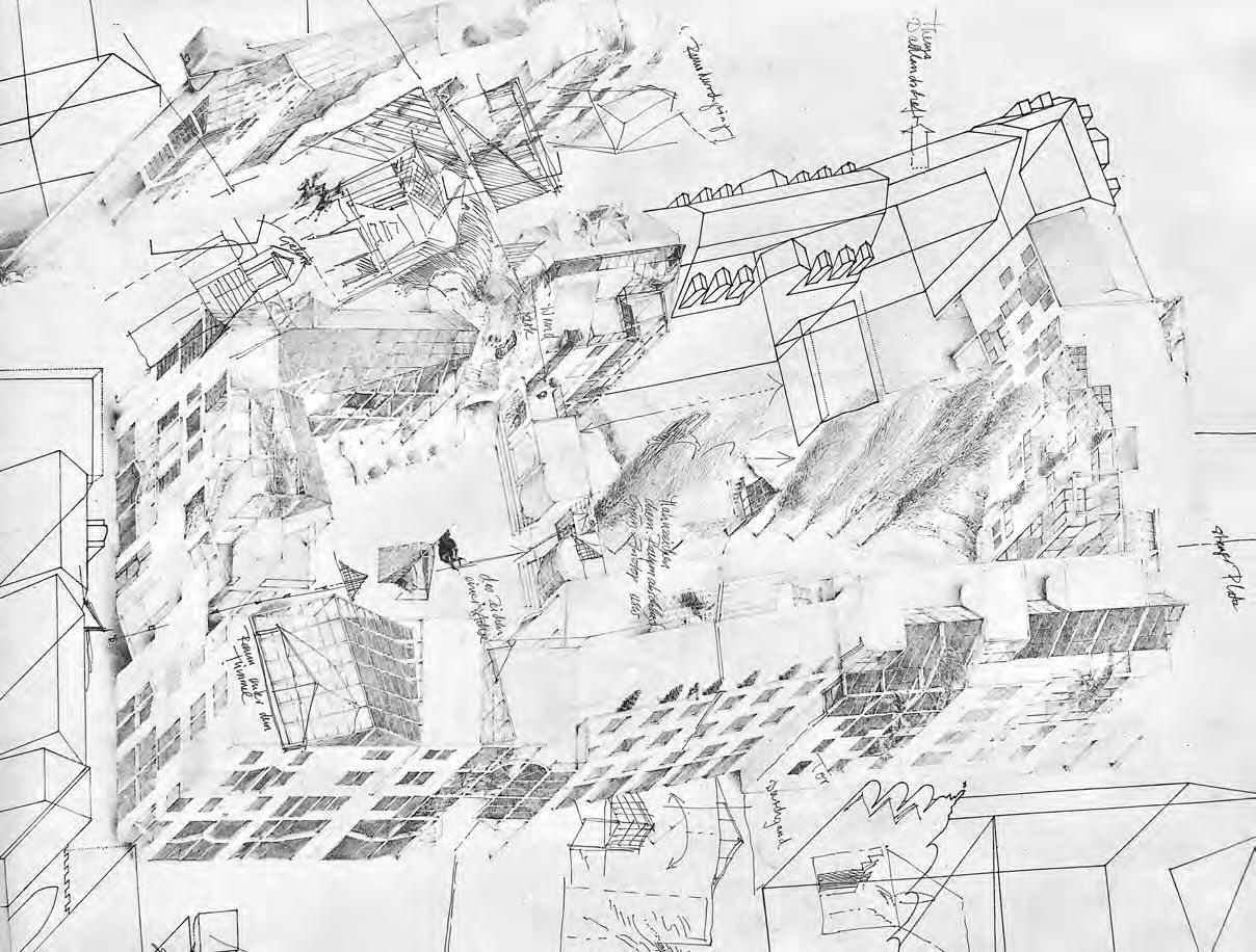 Abb. 1 – Vorstufe zur Einreichung des Wettbewerbsbeitrages Zur Marktnordseite in Weimar, Bernd Rudolf und Jürgen Villmov, 1985