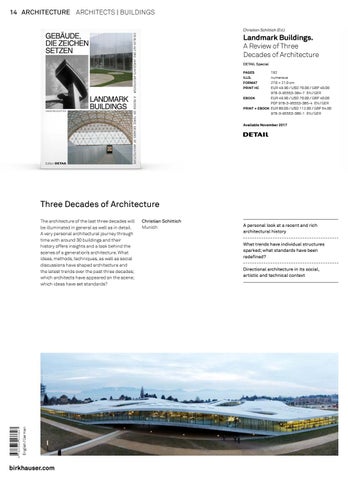 Landmark Buildings. A Review of Three Decades of Architecture DETAIL Special PAGES 192 ILLS. numerous FORMAT 27.0 × 21.0 cm PRINT HC EUR 49.90 / USD 70.00 / GBP 40.00