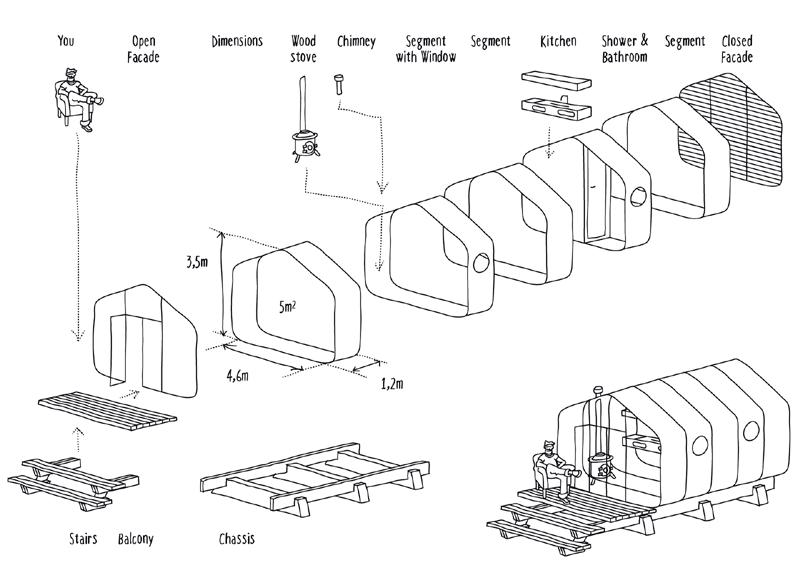 sions of the units can be adjusted variably, depending on the number of components. The units can be arranged differently and thus fit different types of residents, such as a group of workers or several families. The smaller unit was exhibited on Wrocław’s historic market square during the European Capital of Culture 2016 programme. The project was implement ed in cooperation with the Wrocław University of Science and Technology, whose students were involved in the construction. Marcel Bilow from the