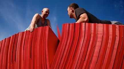 by James Cropper at the Burneside Mill. James Cropper was able to produce paper of this particular vibrancy and colour that met the strict environmental standards this piece required. All the paper used in PaperBridge, 20,000 sheets altogether, was recovered and