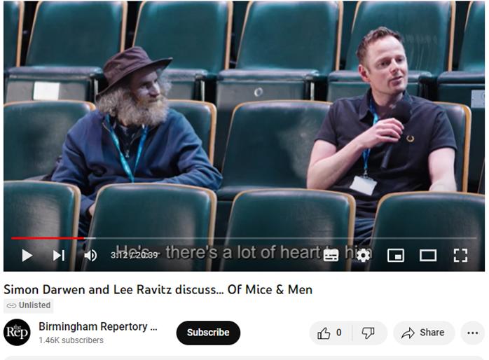 ● Accessible Arts specific resources to delve into this historic production which sees the first Learning Disabled actor playing Lennie on The Rep’s stage.