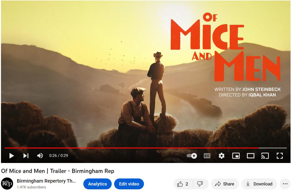 Welcome to the resource pack for The Rep’s production of Of Mice and Men. A story of enduring friendship, this new production from Rep Associate Director and Commonwealth Games Opening Ceremony Director, Iqbal Khan, focuses a 2023 lens on John Steinbeck’s affecting tale of the crumbling American dream