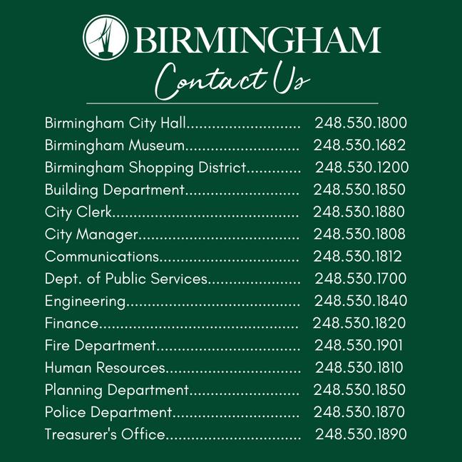 Visit www.bhamgov.org/contacts to view a list of department contact numbers for services needed.