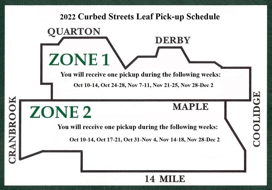 For streets with curbs only, simply rake your leaves into the street immediately next to the curb the weekend prior to your street’s designated pickup week. Please note the city is divided into two zones (see map below). Leaves remaining after the final collection week, November 28 December 2, must be bagged in accordance with the below instructions for uncurbed streets.